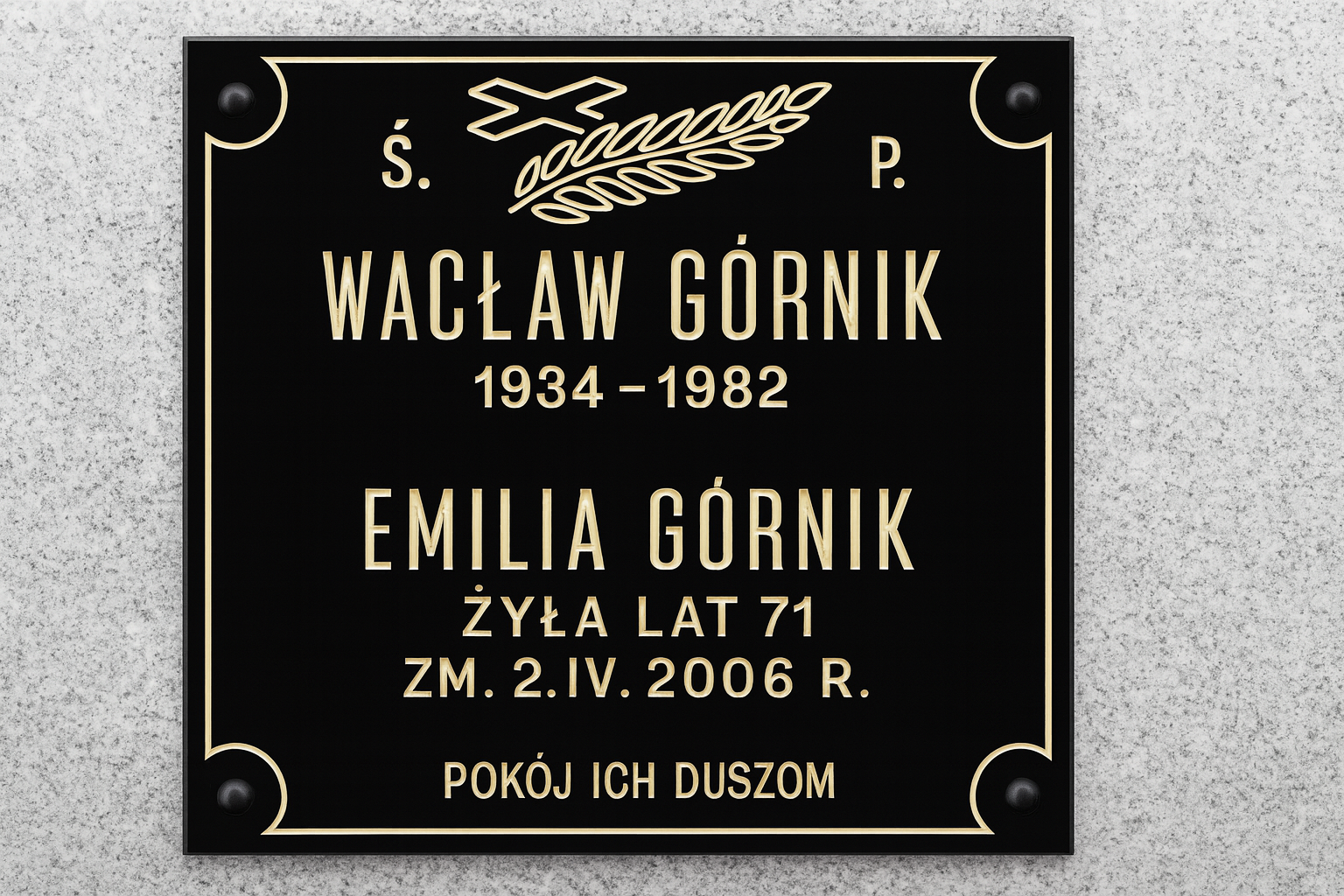 Na podstawie Twoich wytycznych przygotowuję projekt tablicy — estetyczny, czytelny i dopasowany do charakteru miejsca pamięci. Otrzymujesz go do akceptacji lub ewentualnych poprawek.